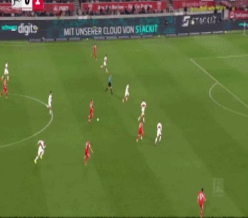 比赛开打之后,两支球队就在场上拉开架势对攻,第3分钟杰克逊前场抢断后,带球杀入禁区,但太犹豫被回防球员将皮球破坏出了底线,逃过一劫的斯图加特,第9分钟还以颜色,昂达夫的射门打在了格雷罗的手臂上,不过主裁判没有任何表示,2分钟之后,奥利塞右路传中,莱默尔脚后跟破门得分,帮助拜仁取得了1-0的领先,上赛季至今奥利塞在联赛已经送出了22次助攻,同期五大联赛第一人。