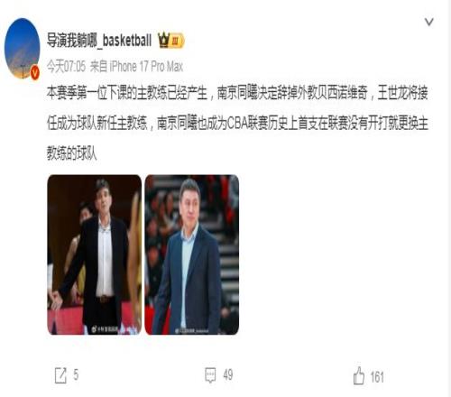 上一篇: 官宣!南京同曦队主教练下课,王世龙接任许利民直言外援太软